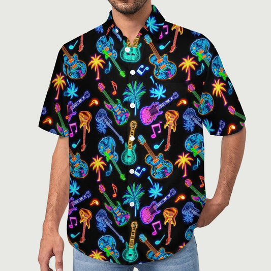 Guitar Neon Hawaiian Shirt With Button Closure