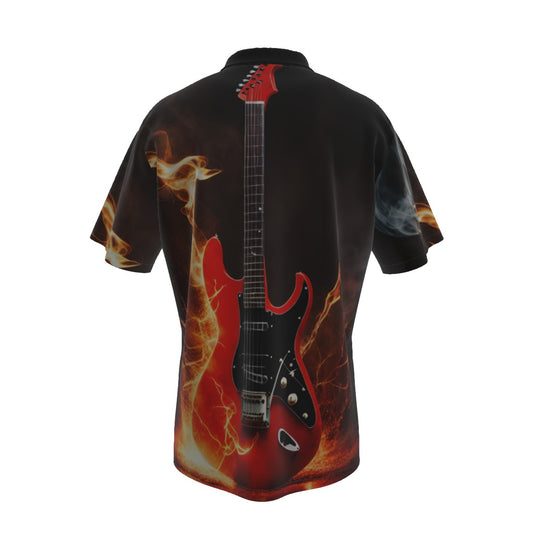 Slubbed Fabric Short Sleeve Guitar Hawaiian Shirt with Pocket